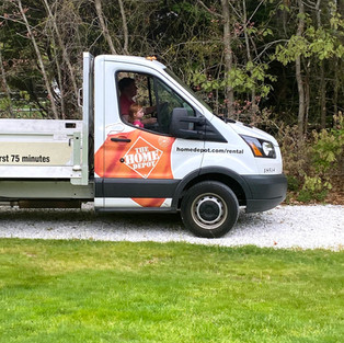 So I was in a bit of a mood when James arrived home with our new shed (to contain said objects), but my mood quickly shifted when the kids raced out to meet him full of excitement, not because of the shed, but because of the Home Depot flatbed he cruised in on. They all took turns riding shotgun and even went for a spin around the neighborhood to showboat their cool ride.